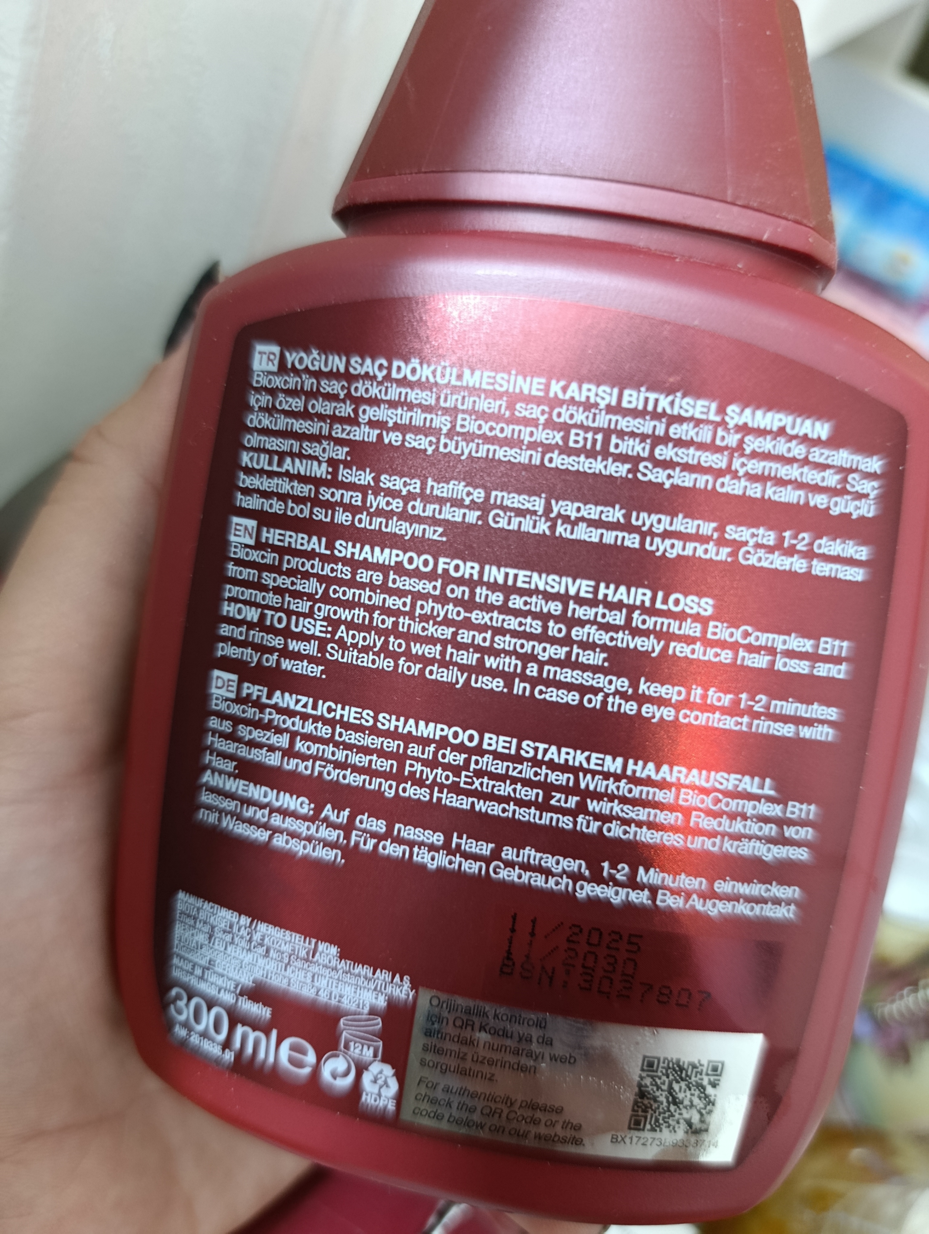شامپو ضد ریزش بیوکسین bioxcin مخصوص تمامی موها حجمی معادل 300 میل دارد. شامپو گیاهی ضد ریزش مو بیوکسین bioxcin با فرمولاسیون پیشرفته خود، بهره گیری از عصاره های کاملا طبیعی، انواع ویتامین ها و مواد معدنی برای کنترل ریزش مو طراحی شده است و به عنوان یکی از بهترین شامپوهای ضد ریزش مو به کار می رود. این شامپو برای استفاده انواع مو ایده آل است و با ترکیبات مفید موجب افزایش استحکام موها می گردد که از این طریق در درمان ریزش مو بسیار تاثیر گذار است. از مزایای خوب شامپو بیوکسین می توان به ضخیم شدن تارهای مو، تقویت پوست سر و بلند شدن سالم موها اشاره کرد. همچنین این محصول توسط مطرح ترین متخصصان مو پیشنهاد می شود و ترکیبات آن فاقد پارابن و فتالات می باشد که همین موضوع عامل مهمی برای حفظ سلامتی موها است. در صورت استفاده مداوم از این شامپو که موجب تغذیه عمیق پوست سر می شود، موهایی پرپشت، سالم و با ظاهر زنده برای مصرف کننده به ارمغان می آورد.
